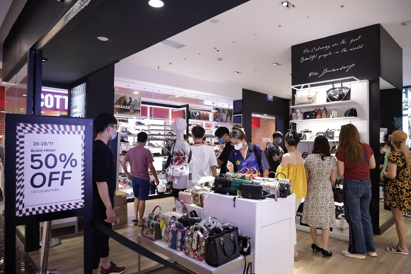 Ngay khi các trung tâm thương mại mở cửa, nhiều khách hàng đã không bỏ lỡ một giây phút nào, “vào cuộc” shopping, nhanh tay lựa chọn ngay những món đồ mình yêu thích. Năm nay, Vincom Black Friday có gần 2.500 gian hàng tham gia cùng ưu đãi lên tới 50%++. Đặc biệt, nhiều thương hiệu còn “tặng” khách hàng loạt ưu đãi lên tới 70 - 80%.