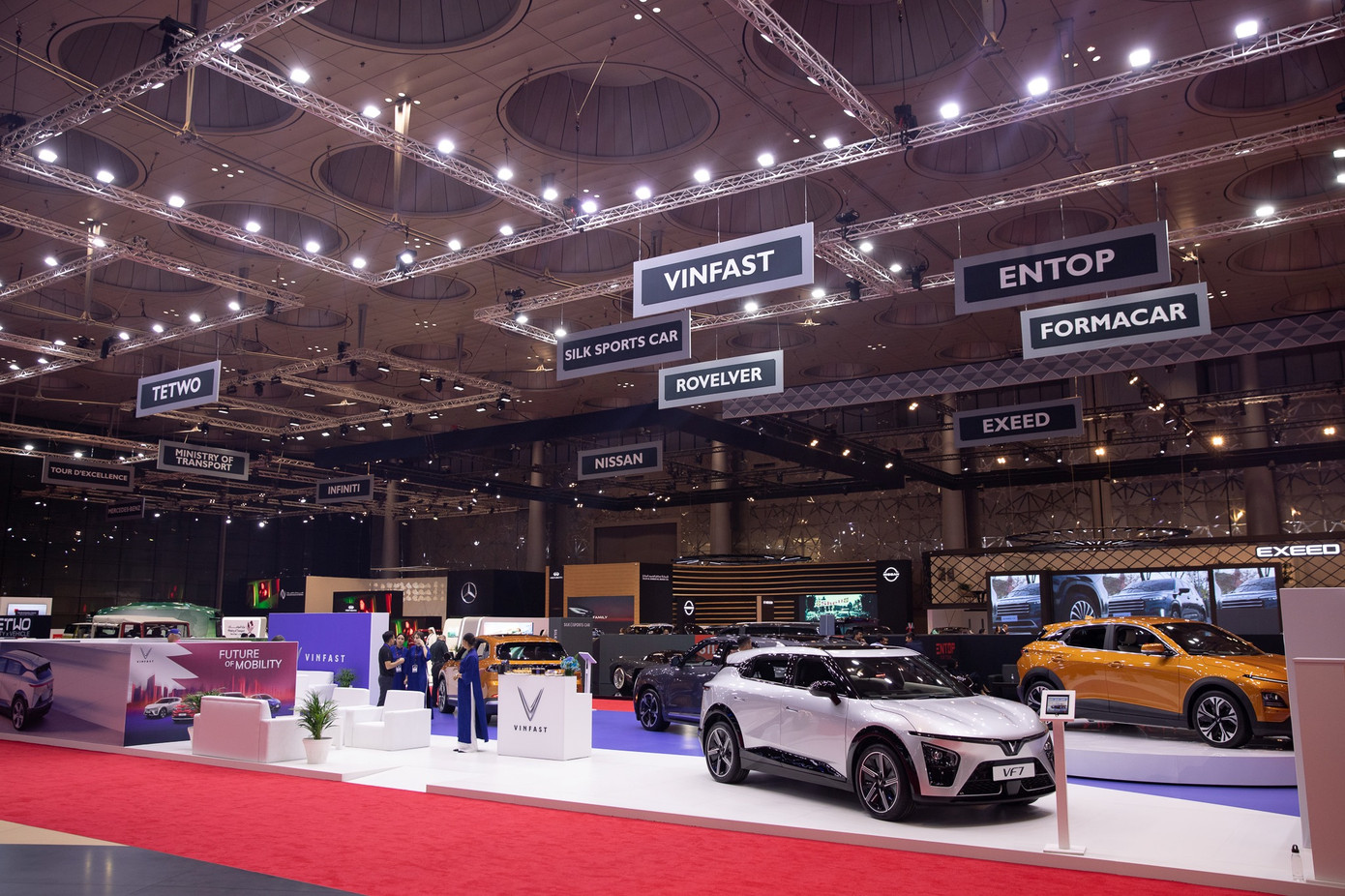 Tại triển lãm, VinFast trưng bày bốn mẫu xe điện VF 6, VF 7, VF 8 và VF 9, mang đến cho công chúng và các nhà đầu tư địa phương cơ hội trải nghiệm thực tế sản phẩm và các tính năng thông minh trên xe.