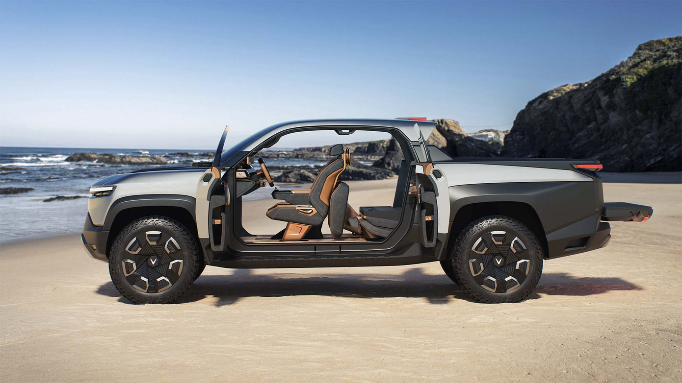 VF Wild thuộc phân khúc xe bán tải cỡ trung, có chiều dài tổng thể 209 inch (5.324 mm) và chiều rộng 79 inch (1.997 mm). Thiết kế gọn gàng của xe sẽ được tối ưu không gian nhờ khoang chứa có thể mở rộng linh hoạt, thông qua tính năng gập tự động của kính chắn gió và hàng ghế sau, giúp tăng chiều dài khoang chứa từ 5 lên đến 8 feet (1.524 đến 2.438 mm). Đây cũng là kích thước dài nhất trong số những mẫu xe cùng phân khúc, giúp người dùng có được không gian rộng rãi để chở đồ, nghỉ ngơi hay giải trí trên xe, tăng tối đa sự tiện dụng. Mẫu xe ý tưởng VF Wild cũng được tích hợp cửa sổ trời toàn cảnh và gương chiếu hậu điện tử giúp cải thiện tính khí động học của xe.