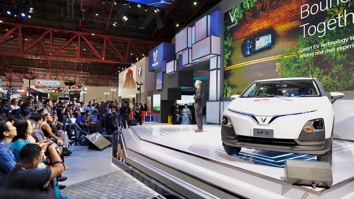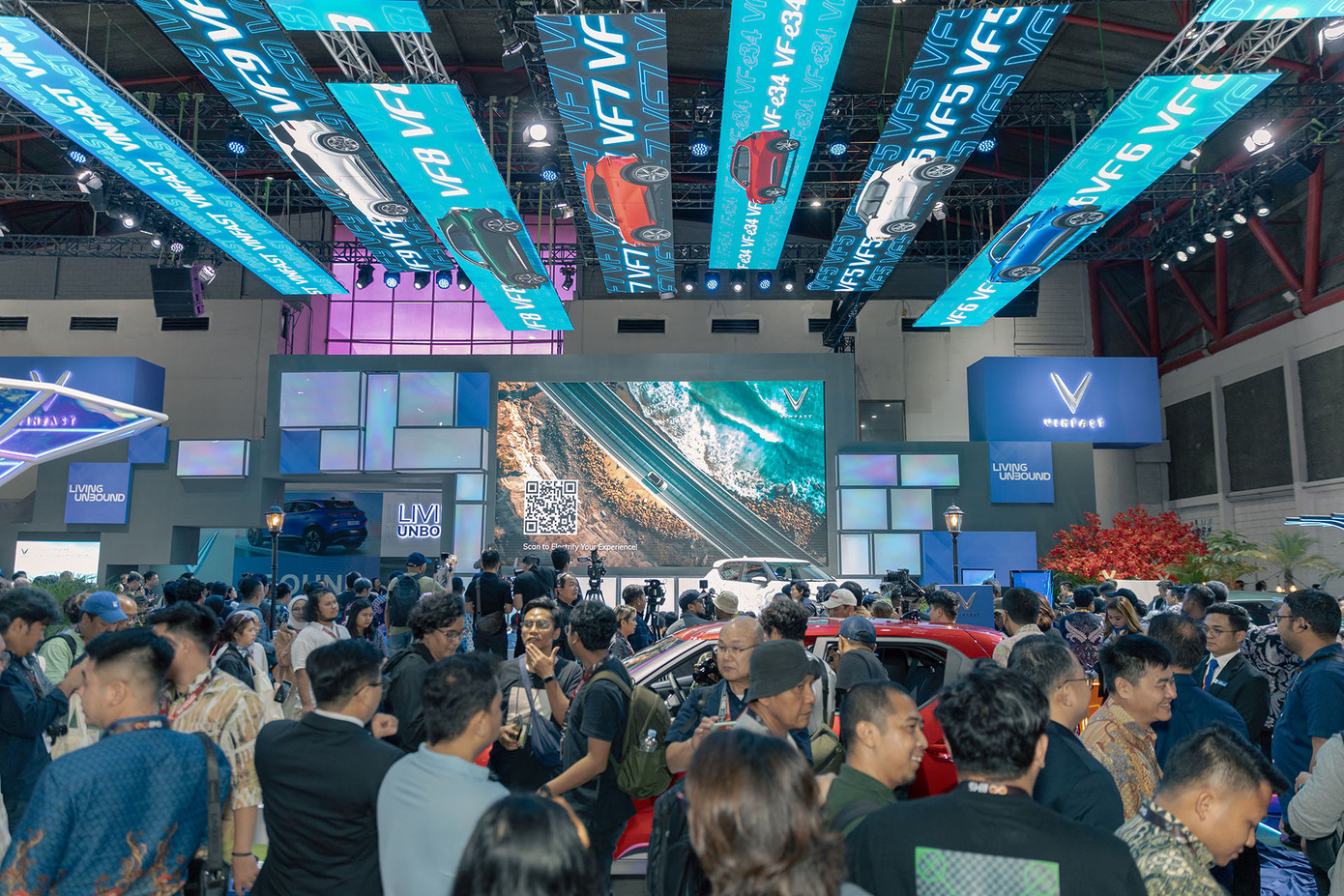 Lần đầu tham dự Triển lãm Ô tô Quốc tế Indonesia (Indonesia International Motor Show - IIMS), gian trưng bày của VinFast gây choáng ngợp với đông đảo khách tham quan bởi quy mô và phong cách độc đáo mang thông điệp “Khai phóng cuộc sống xanh”.