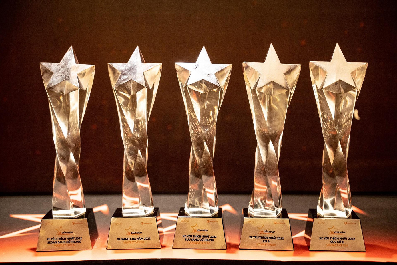 Theo kết quả được công bố hôm 30/3, với gần 315.000 lượt bình chọn, 4 mẫu xe VinFast gồm VF e34, Lux SA2.0, Lux A2.0 và Fadil đều nằm trong nhóm 15 xe được yêu thích nhất theo từng phân khúc. VinFast cũng là hãng xe đạt được nhiều giải thưởng nhất với tổng số 5/16 giải.