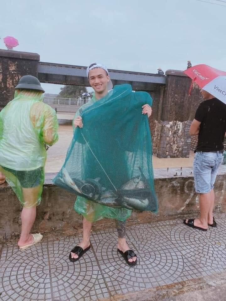 | Tại ngã tư Mê Linh - Tôn Đức Thắng (TP Vĩnh Yên) người dân mang lưới, túi ra đường bắt cá. |