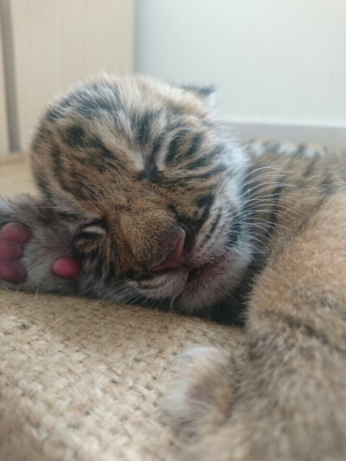 Các hổ con được chăm sóc với chế độ đặc biệt, cứ 3 giờ một lần được cho bú bằng sữa dành riêng cho thú họ mèo. Chỉ sau ngày thứ 4, những hổ con bắt đầu mở mắt và đến tuần tuổi thứ 3 bắt đầu biết quen lạ, đùa nghịch, mừng rỡ khi gặp người chăm sóc.
