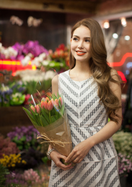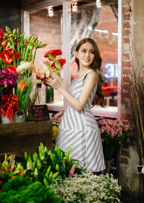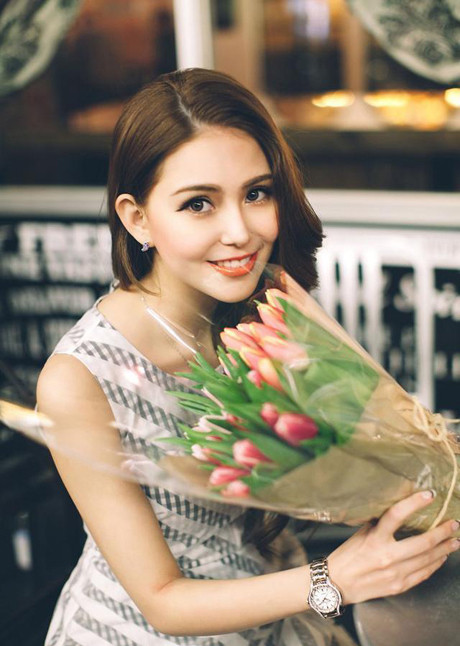 Bà xã Châu Kiệt Luân khoe sắc cùng hoa.
