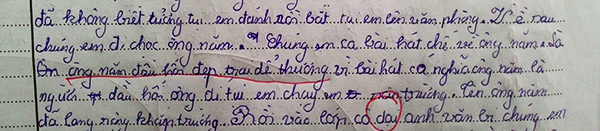 Ngoài nội dung chân thật hé lộ cuộc sống sinh động của học trò, bài văn còn gây chú ý vì hàng loạt lỗi chính tả, câu từ lộn xộn của một học sinh lớp 6.