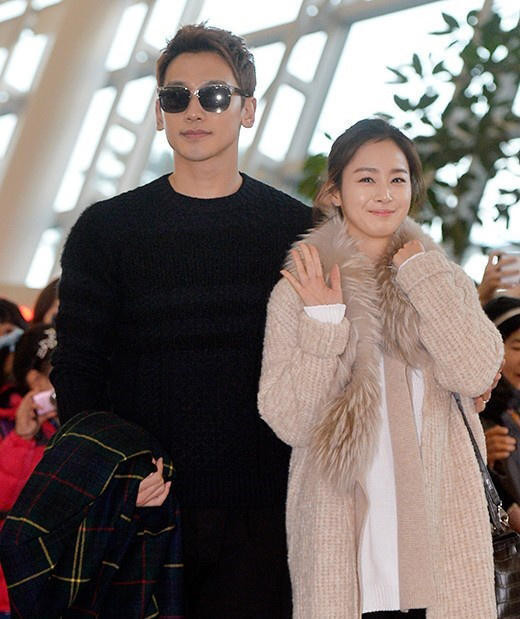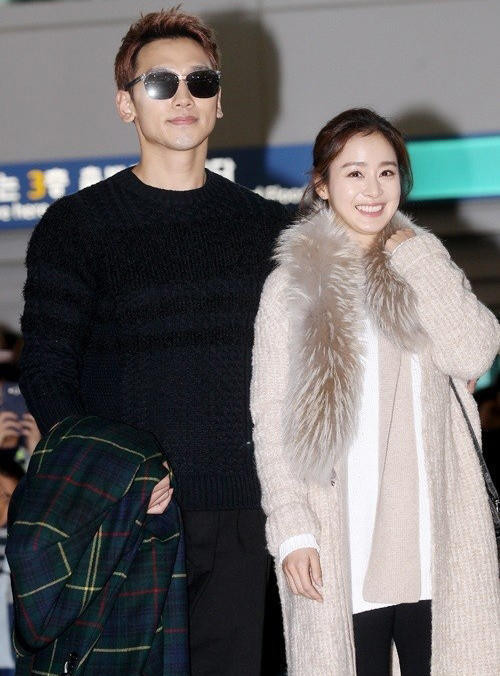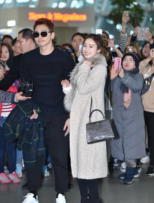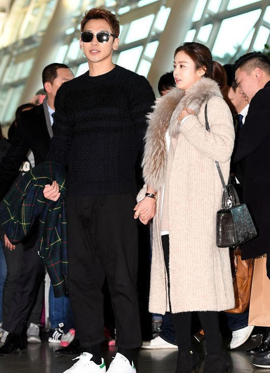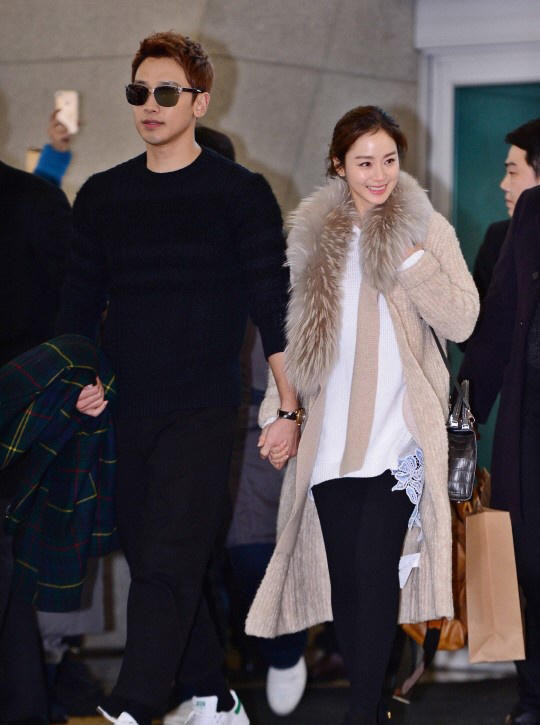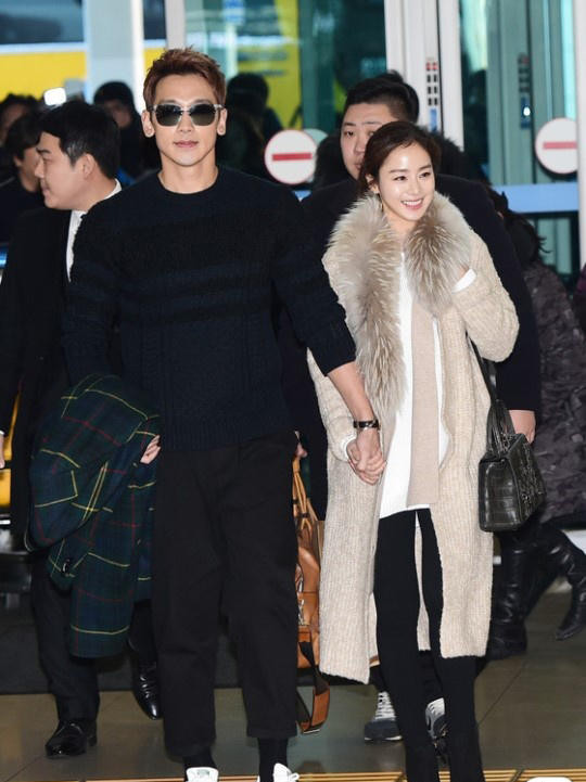 Bi Rain nắm chặt tay vợ không rời.