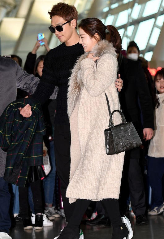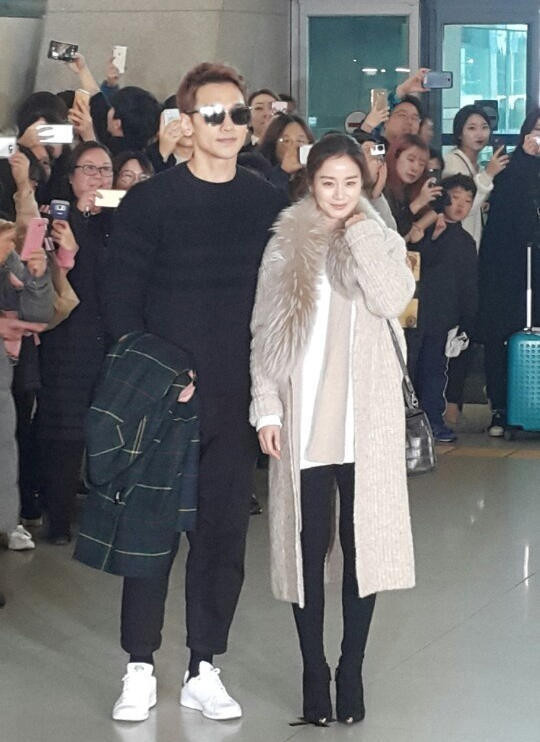 TPO - Đôi uyên ương nắm chặt tay khi có mặt ở sân bay quốc tế Incheon để bay tới Bali hưởng kỳ trăng mật.