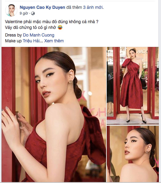 Hoa hậu Kỳ Duyên 'nhuộm đỏ' facebook cá nhân với gam màu đỏ quyến rũ và bí ẩn trong ngày lễ Tình Nhân.