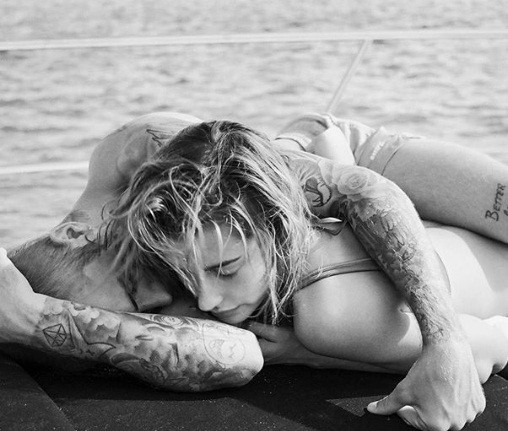 Trước đó, "hoàng tử nhạc pop" cũng khiến fan "nóng mắt" với cảnh "khóa môi" vợ say đắm. Tuy nhiên, điều khiến người hâm mộ chú ý là làn da đầy mụn của Justin Bieber trong bức hình này.