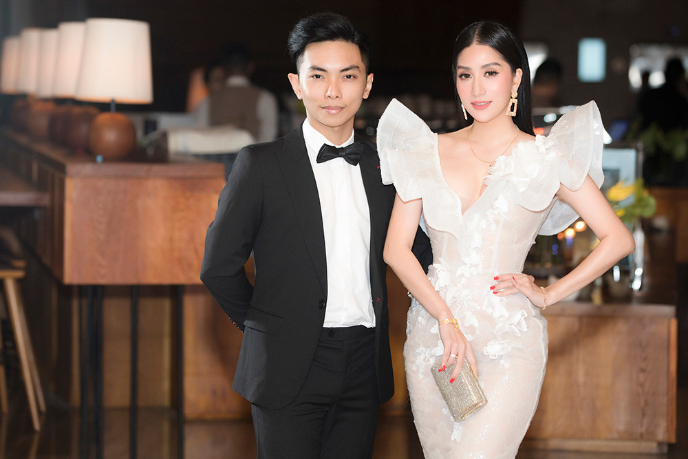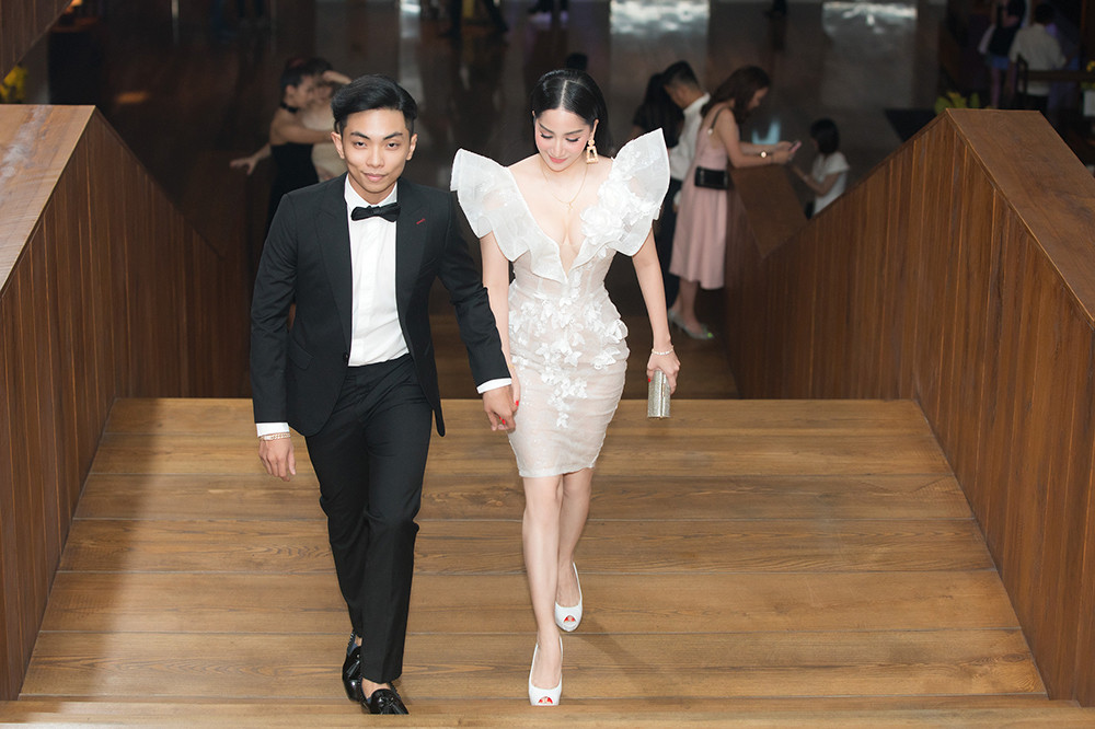 Vợ chồng Khánh Thi – Phan Hiển cũng là một trong những vị khách mời chiếm spotlight tại buổi tiệc khi sóng đôi tình tứ và không ngần ngại trao nhau những cử chỉ ấu yếm.