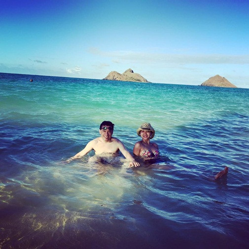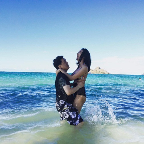 Lam Trường - Yến Phương thích thú đùa nghịch dưới làn nước trong xanh của biển Hawaii