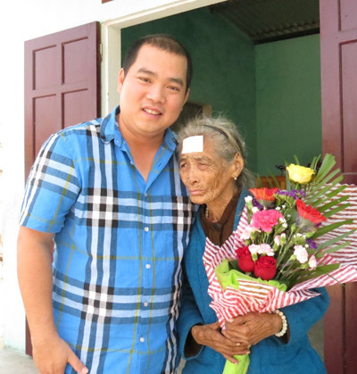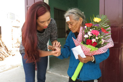 Người mẫu Thúy Hạnh tặng sổ tiết kiệm 5 triệu đồng cho bà Bẻo