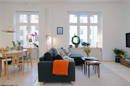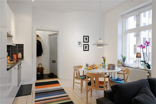 Căn hộ nhỏ mà chúng tôi muốn giới thiệu ngày hôm nay gây ấn tượng bởi sự ngọt ngào, không gian và sự tiện nghi, bất chấp kích thước khiêm tốn của mình chỉ gần 40m2. Căn hộ bao gồm một phòng khách nối tiếp với phòng ăn, góc bếp xinh xăn và một khoảng tường lùi, cộng thêm phòng tắm.