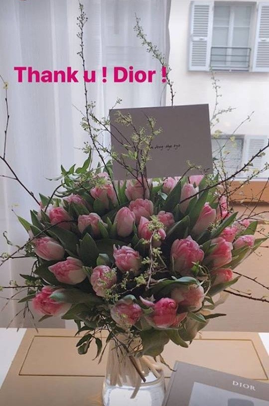 Người đẹp chia sẻ ảnh bó hoa Dior tặng cô.