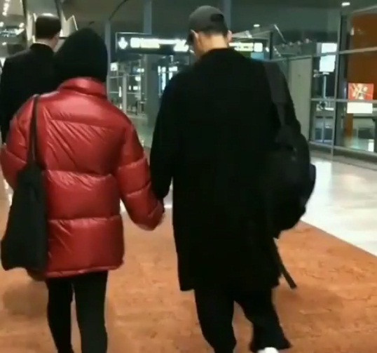 Hôm 19/1, cặp đôi "Hậu duệ mặt trời" tay trong tay ở sân bay.