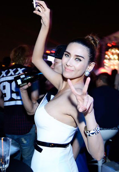 Người mẫu Hoàng Yến nhún nhảy theo giai điệu của âm nhạc điện tử.