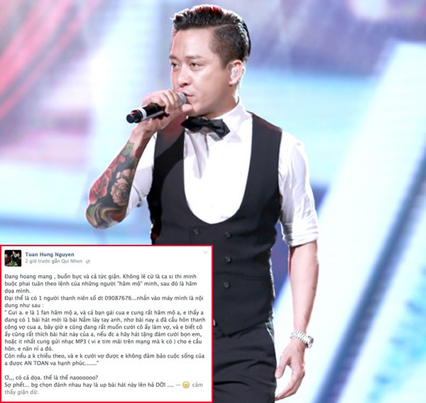 Là một ca sĩ, được fan quan tâm đặc biệt về ca khúc mới là một niềm vui. Tuy nhiên, trường hợp của ca sĩ Tuấn Hưng lại trớ trêu hơn. Một fan cuồng của nam ca sĩ đã gửi tin nhắn thúc giục và thậm chí đe dọa Tuấn Hưng phải sớm phát hành chính thức ca khúc Nắm lấy tay anh.