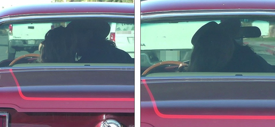 Amber và người tình mới lên xe hơi Mustang và tiếp tục trao nhau nụ hôn say đắm.