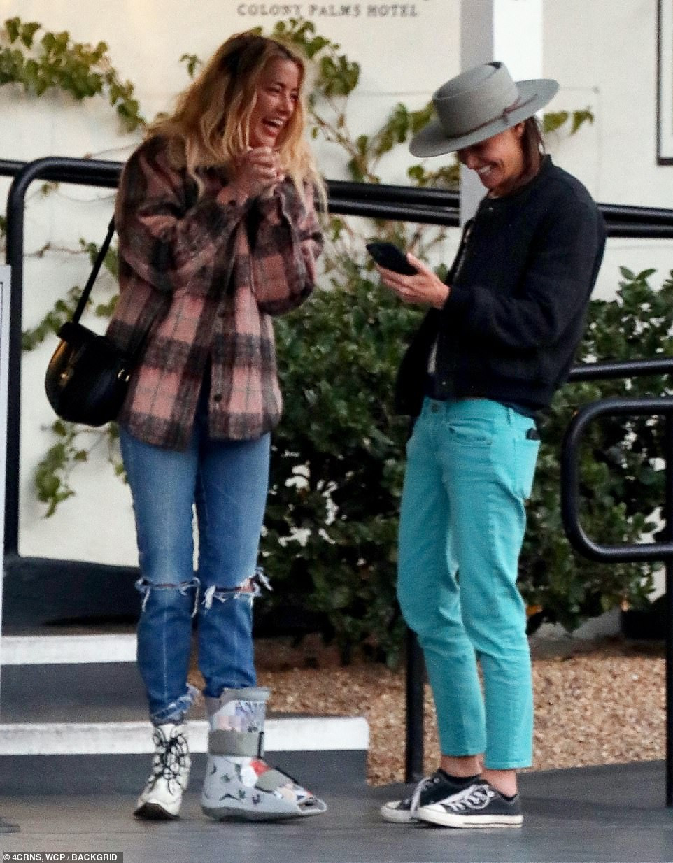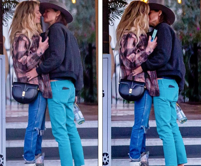 Nụ hôn đồng giới giữa Amber Heard và Bianca Butti nhanh chóng lọt ống kính các paparazzi khi cả hai rời khách sạn ở Palm Springs, California vào hôm qua.