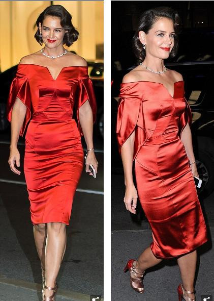Bộ váy cho thấy rất rõ vòng 2 không thon gọn của Katie Holmes
