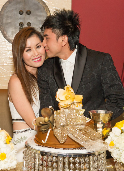 Hai vợ chồng dành cho nhau những cử chỉ yêu thương trong suốt buổi tiệc.