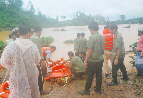 Trong buổi sáng, lực lượng chức năng đã có mặt tại vùng hạ du, mang theo nhiều áo phao và bè để hỗ trợ, sơ tán, cứu người dân ra khỏi vùng ngập.