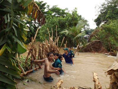 Trước đó, vào rạng sáng ngày 10/10, đoạn đê kể trên đã bị vỡ. Ông Nguyễn Văn Giàu, sống ở khu vực 3, cho biết: Khi đê bị vỡ vào sáng sớm, tình hình không nghiêm trọng. Tuy nhiên, đến chiều tối, đoạn đê tiếp tục vỡ, nước tràn qua làm ngập nhà và ao cá tới gần 1 m.