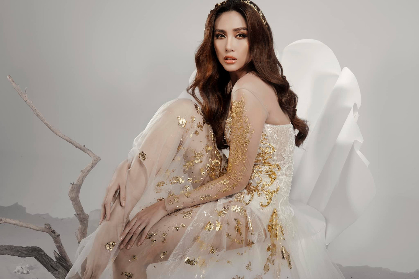 Á hậu Việt Nam 2008 đẹp tựa 'nữ thần' khi diện loạt váy xuyên thấu chất liệu ánh kim vương giả.