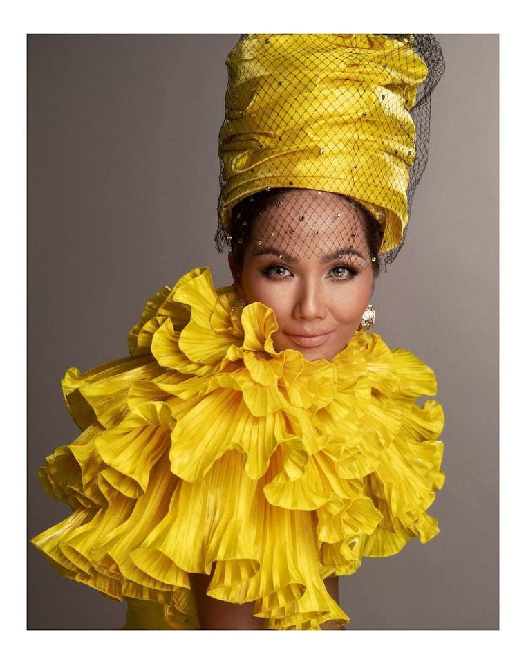 Hoa hậu H'Hen niê biến hóa như tắc kè hoa với bộ váy bèo nhún màu vàng độc đáo.