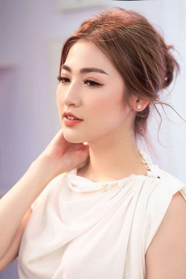 Á hậu Tú Anh đẹp kiêu sa không tì vết với kiểu tóc búi sang trọng.