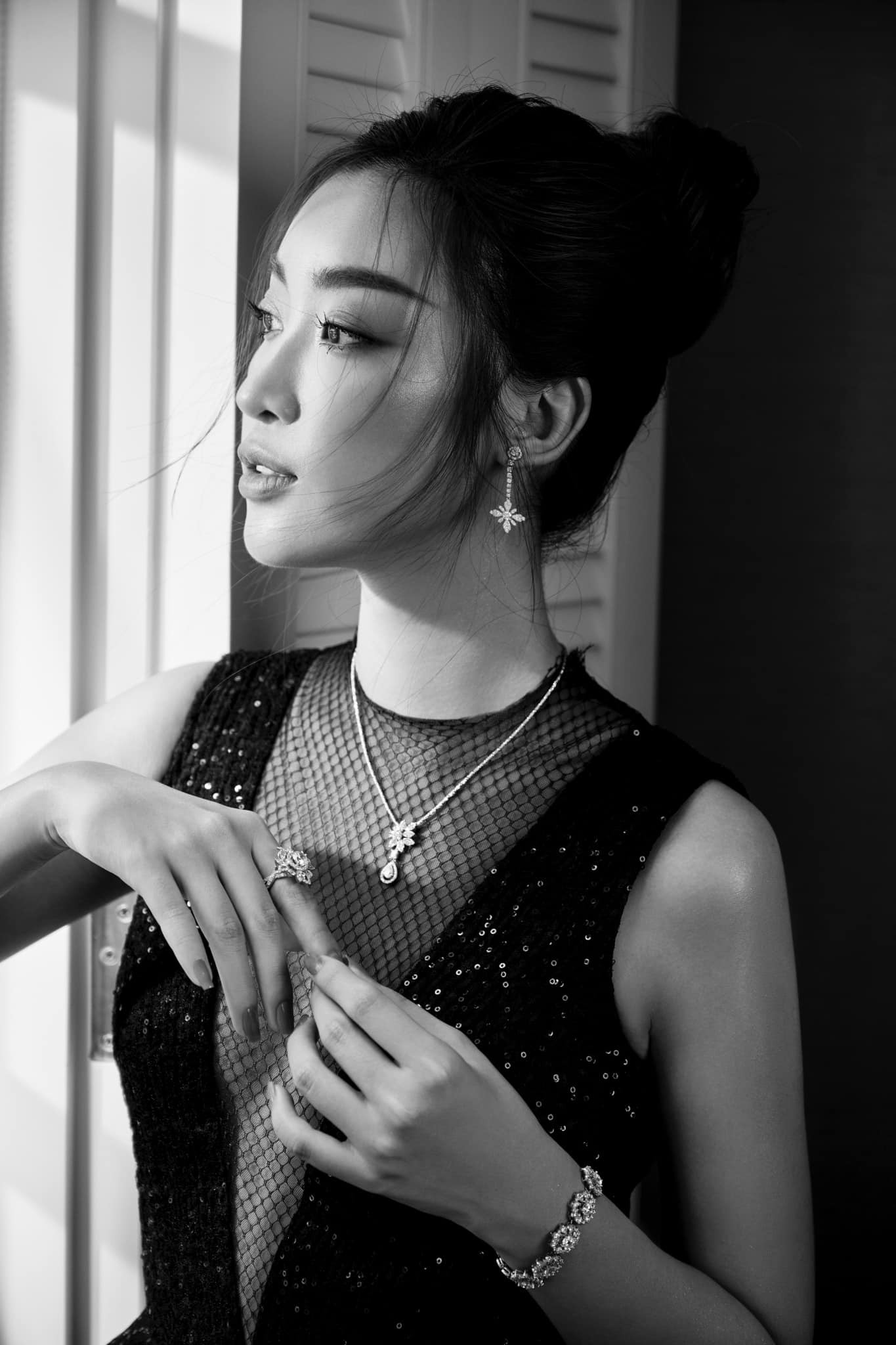 Hoa hậu Đỗ Mỹ Linh đẹp kiêu sa và quyến rũ với bộ váy xuyên thấu xẻ vòng một sâu hút.