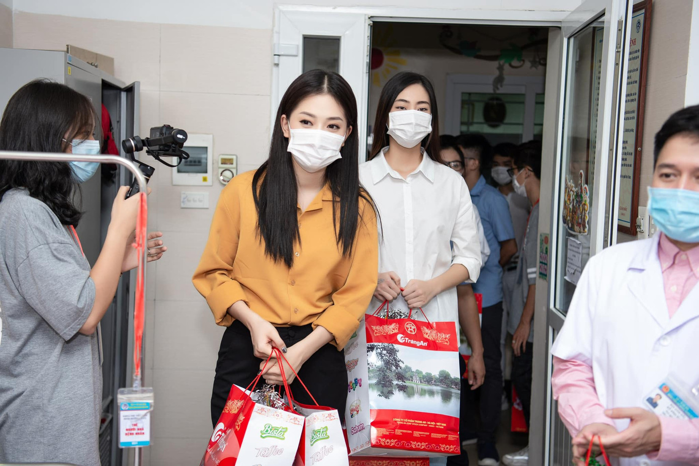 Á hậu Phương Nga và Hoa hậu Lương Thuỳ Linh tặng bánh trung thu cho các bệnh nhi tại bệnh viện Xanh-pôn.