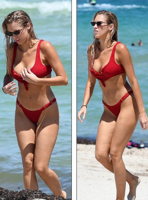 TPO - Vợ vận động viên bơi lội nổi tiếng người Mỹ Ryan Lochte - nàng cựu mẫu Playboy Kayla Rae Lochte thả dáng săn chắc cuốn hút mê hồn trong bộ bikini đỏ trên bãi tắm Miami.