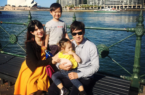 Trong bộ ảnh đi du lịch ở Australia, Minh Hà diện những bộ đồ rộng chụp ảnh bên chồng con. Nhiều người nghi ngờ vợ Lý Hải đang mang thai.
