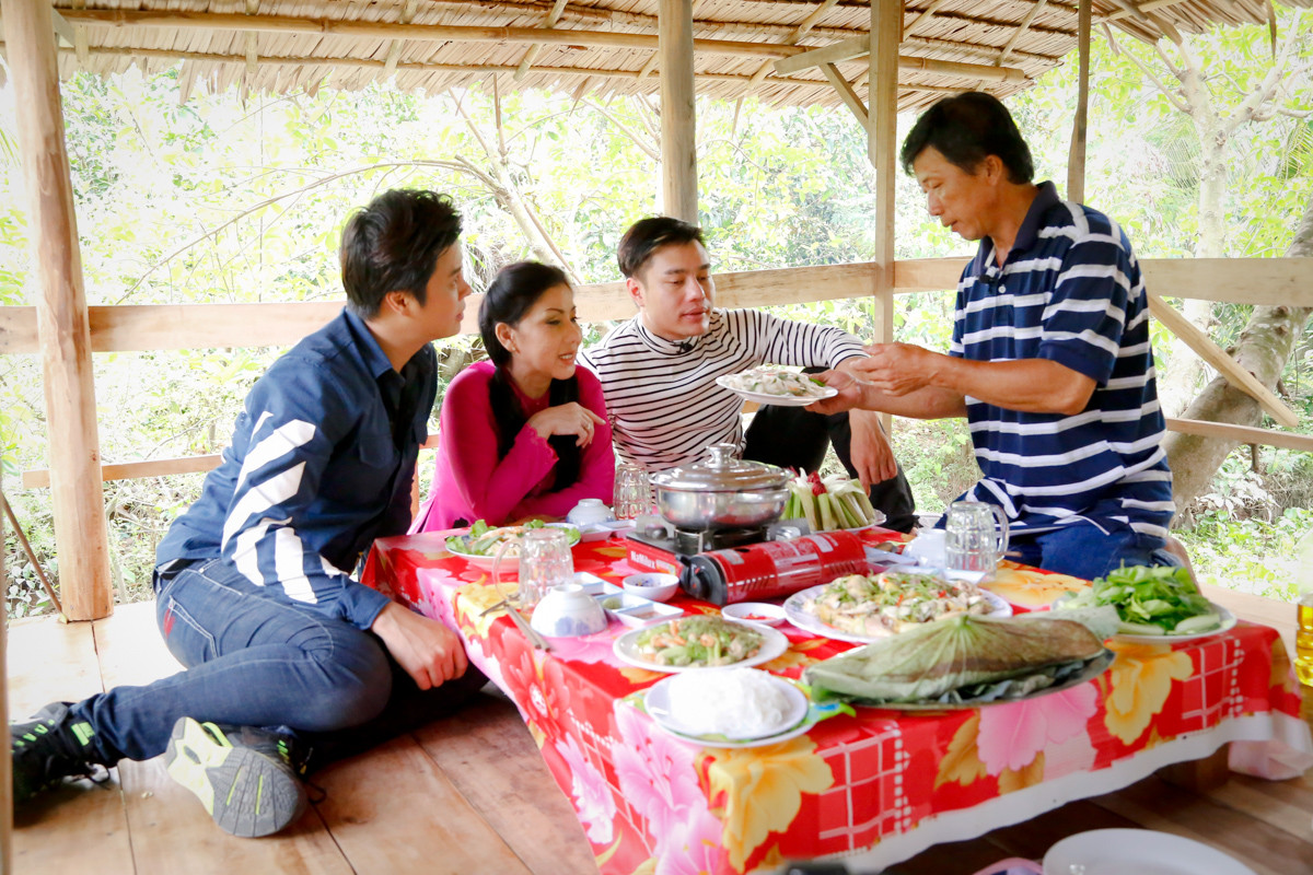 Không chỉ được thưởng thức trái cây, Võ Minh Lâm cùng Dương Lâm và Phượng Loan còn được người dân thân thiện, hiếu khách tiếp đãi bằng bữa tiệc thịnh soạn với những món đặc sản nơi đây như: Gỏi mít, Măng xào tép, Gà xé bưởi, Cá lóc nướng trui, Cá lóc bay, Cá nấu mẵn, Cá thác lác rút xương chiên nước mắm... đặc biệt món Lục bình xào tép được chính bộ 3 đích thân chèo xuồng đi hái trực tiếp từng lá lục bình tươi ngon mang về làm nguyên liệu chế biến.