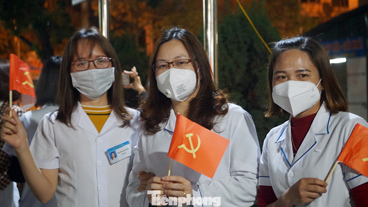 Chị Nguyễn Thủy Ngân (SN 1986, giữa ảnh) cùng đồng nghiệp vui mừng khi bước đầu hoàn thành nhiệm vụ hỗ trợ điều trị cho các bệnh nhân tại Bệnh viện dã chiến số 1. Nữ điều dưỡng chia sẻ, chị là một trong những nhân viên y tế có con nhỏ nên được ưu tiên làm nhiệm vụ vòng ngoài. Hơn một tháng qua, chị chỉ được về vài ngày nghỉ ngơi để thay ca dù ở gần viện. "Hôm nay, chính thức là ngày Tết của các cán bộ, nhân viên y tế và người dân. Tuy nhiên, chỉ vài ngày nghỉ ngơi lấy sức, chúng tôi sẽ tiếp nhận nhiệm vụ mới, phòng dịch trong trạng thái mới", chị Ngân nói.