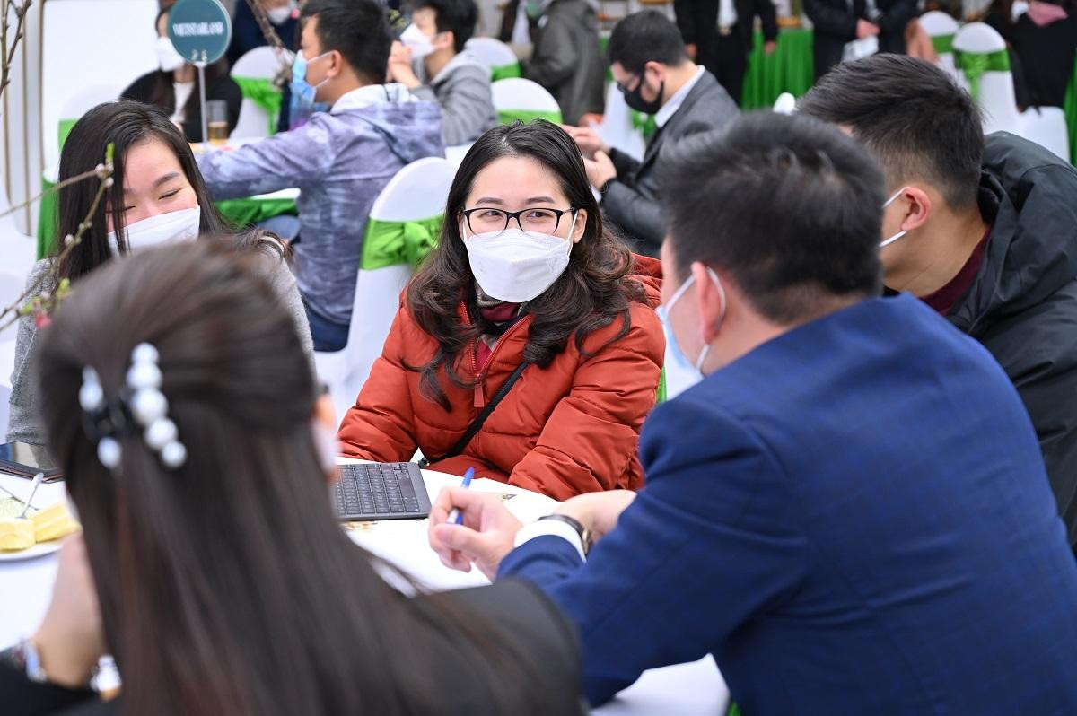 Bất chấp thời tiết Hà Nội lạnh giá, không ít khách hàng vẫn đến từ rất sớm để tìm hiểu thêm về hệ thống cảnh quan đặc sắc của The Sakura khiến không khí hội trường không ngừng nóng lên. Nhằm đảm bảo công tác phòng dịch, ban tổ chức kiểm soát số lượng khách mời là các nhà đầu tư và những khách hàng là cư dân tương lai của The Sakura.