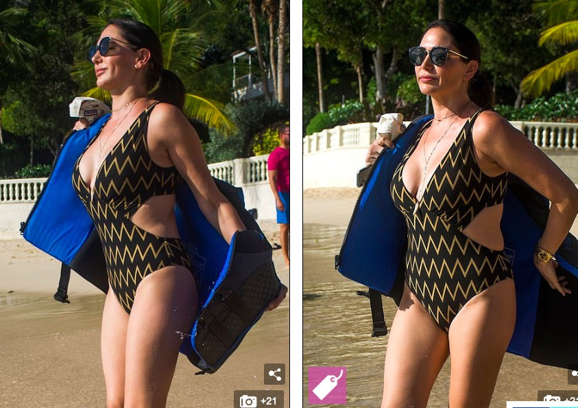 Loạt ảnh về chuyến đi nghỉ ở Barbados của gia đình Simon Cowell được đăng tải trên Dailymail mới đây gây chú ý, đặc biệt là thân hình nảy nở "bốc lửa" của bà xã ông bầu giàu có nổi tiếng ở Anh.