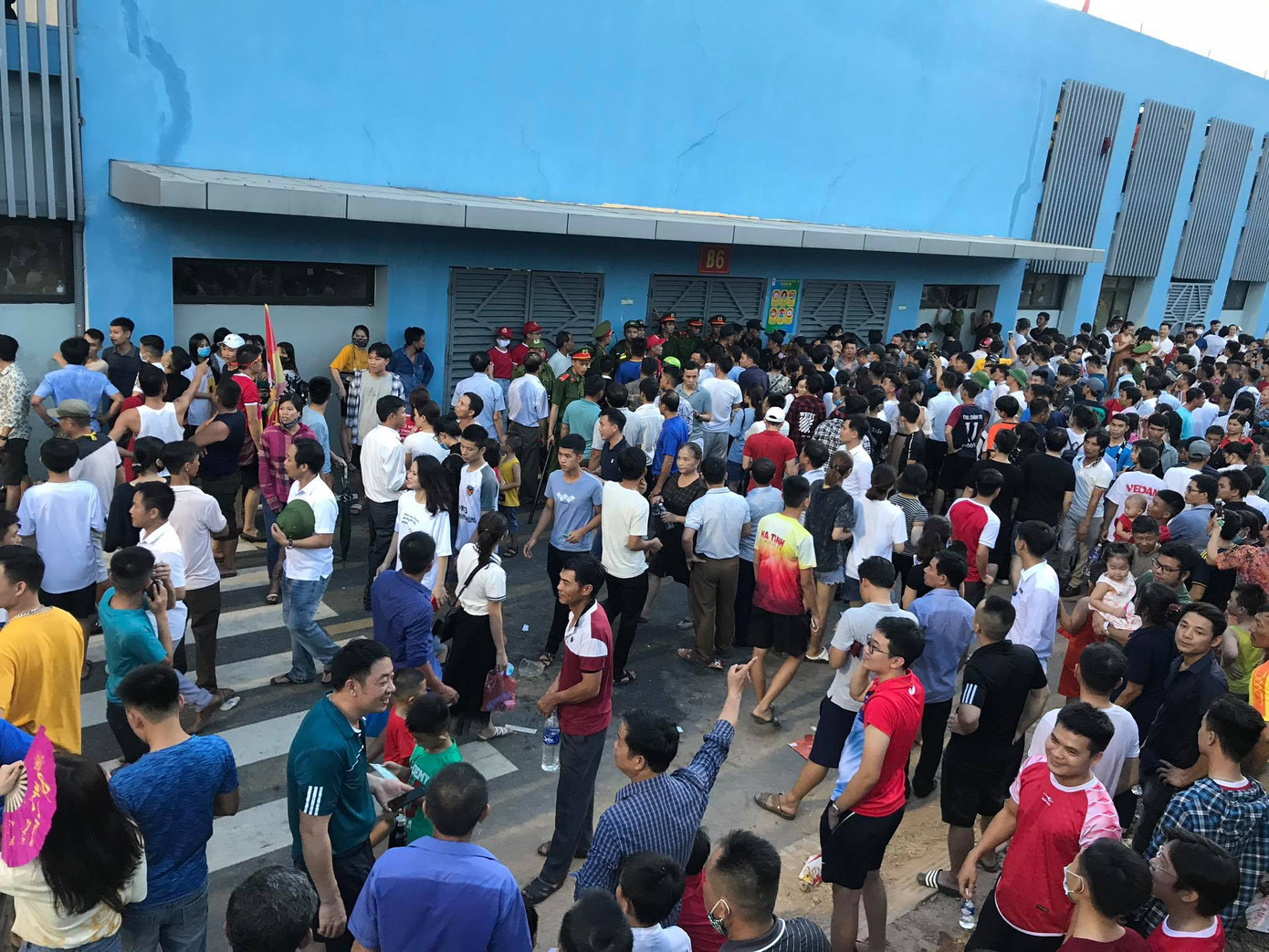 Sau khi bóng lăn, khán giả vẫn tiếp tục đổ vào sân. Bất chấp sự ngăn cản của lực lượng cảnh sát, nhiều người vẫn vượt hàng rào vào sân. Hệ quả là các khán đài của sân Hà Tĩnh rơi vào tình trạng quá tải.