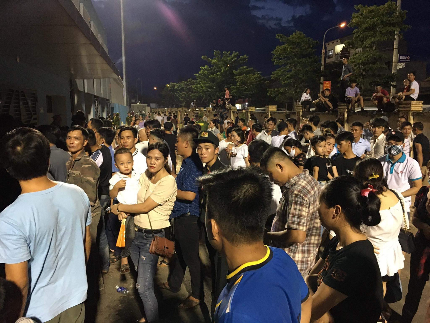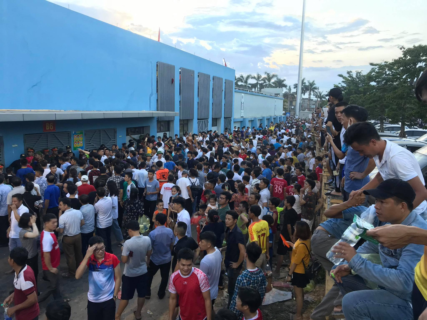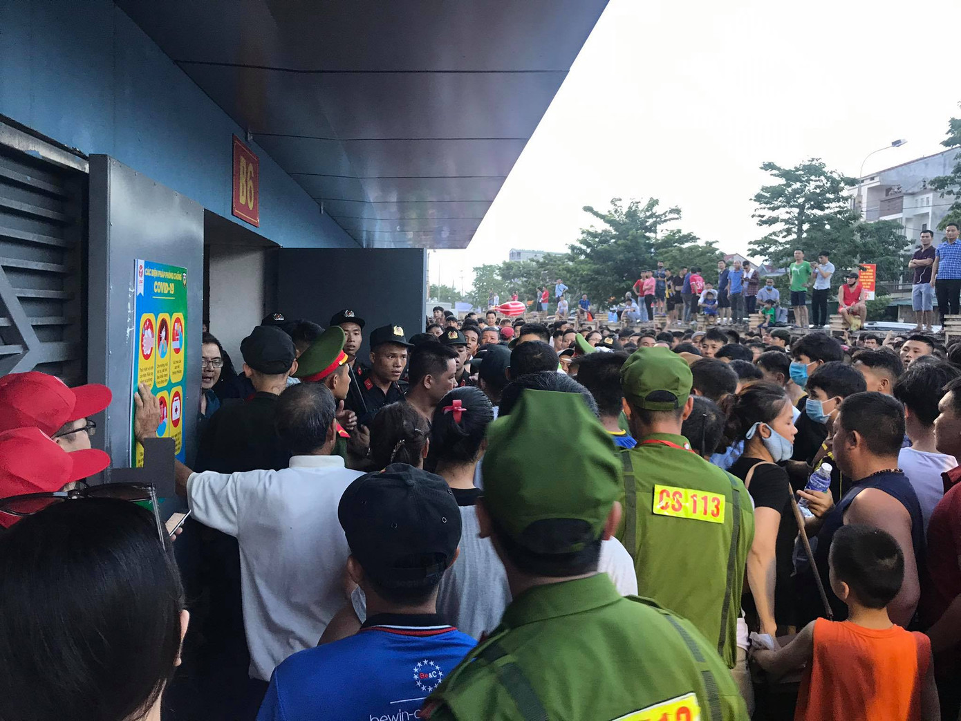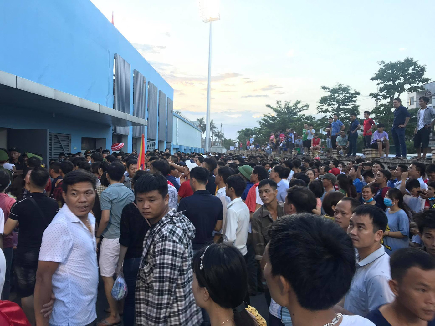 Phía ngoài, rất nhiều cổ động viên có vé nhưng không qua được cổng. Còn bên trong chật ních dẫn đến tình trạng chen lấn, xô đẩy trước cổng ra vào sân vận động.