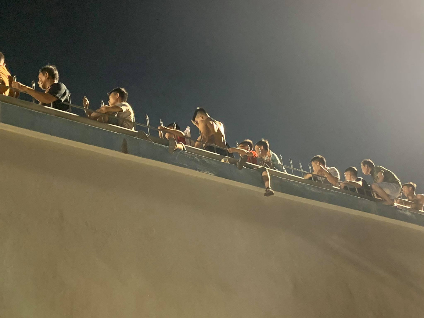 Khán giả trèo lên phía lan can để xem trận đấu.