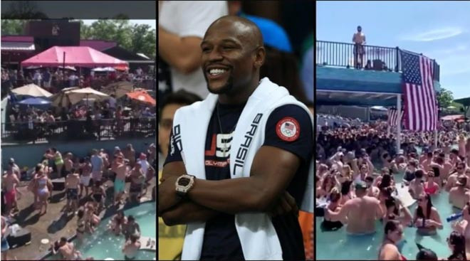 Những hình ảnh và video rò rỉ trên mạng xã hội cho thấy Mayweather ăn mặc thời thượng và nô đùa vui vẻ bên nhiều người đẹp mặc "thiếu vải" tại khu vực VIP của hộp đêm. Tất cả đều không đeo khẩu trang và giữ khoảng cách an toàn, trong bối cảnh nước Mỹ vẫn đang phải gồng mình chống chọi sự lây lan của đại dịch COVID-19.