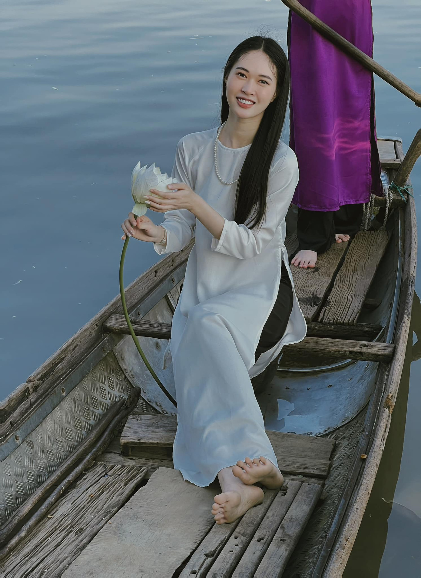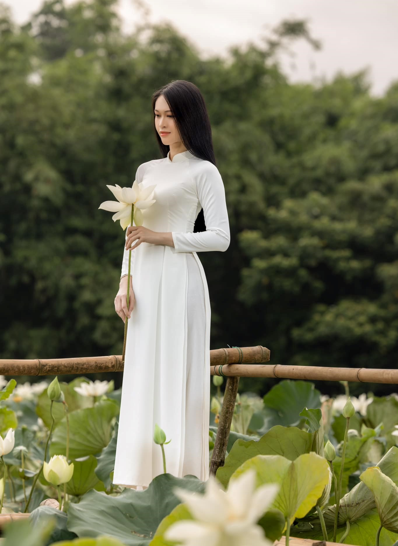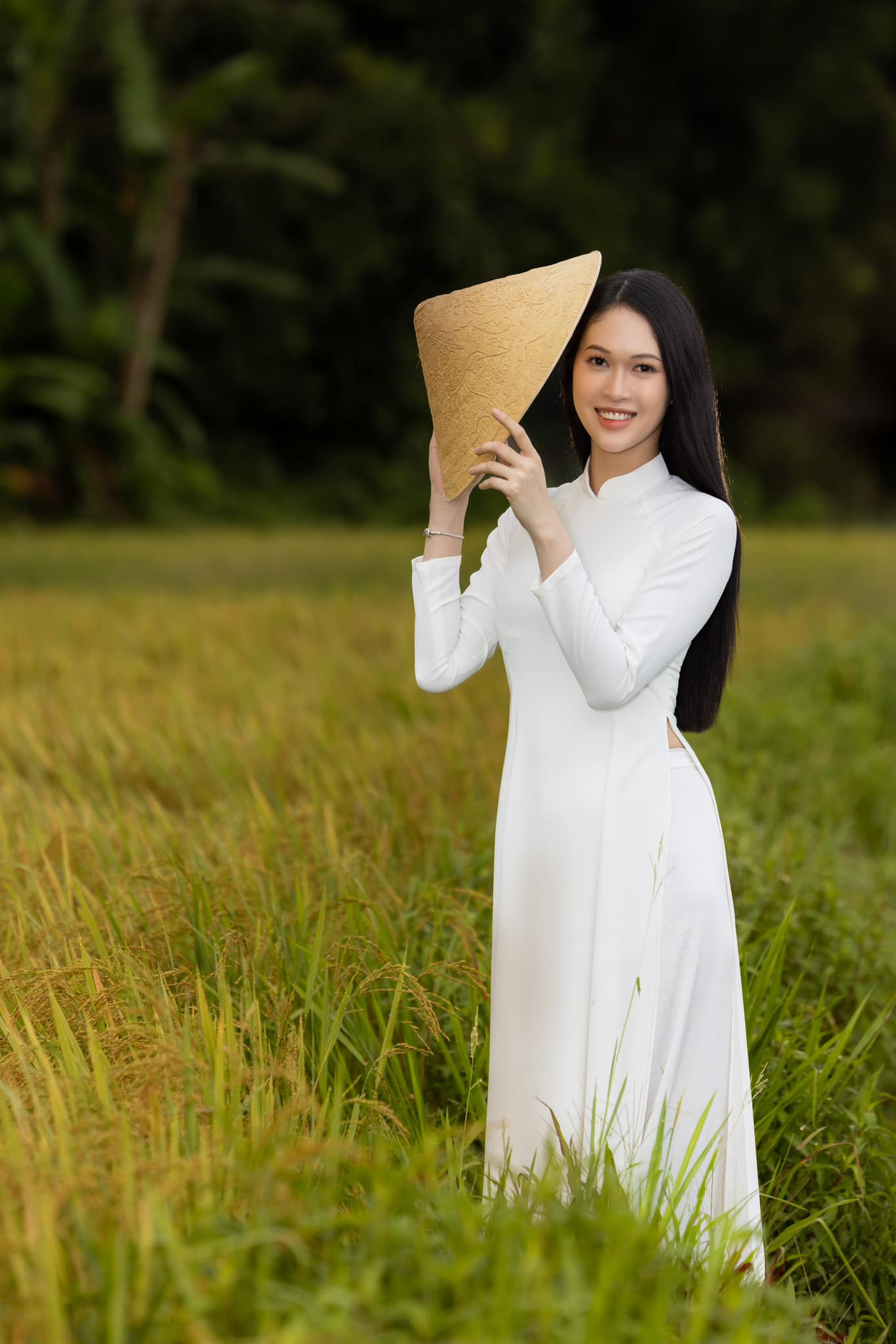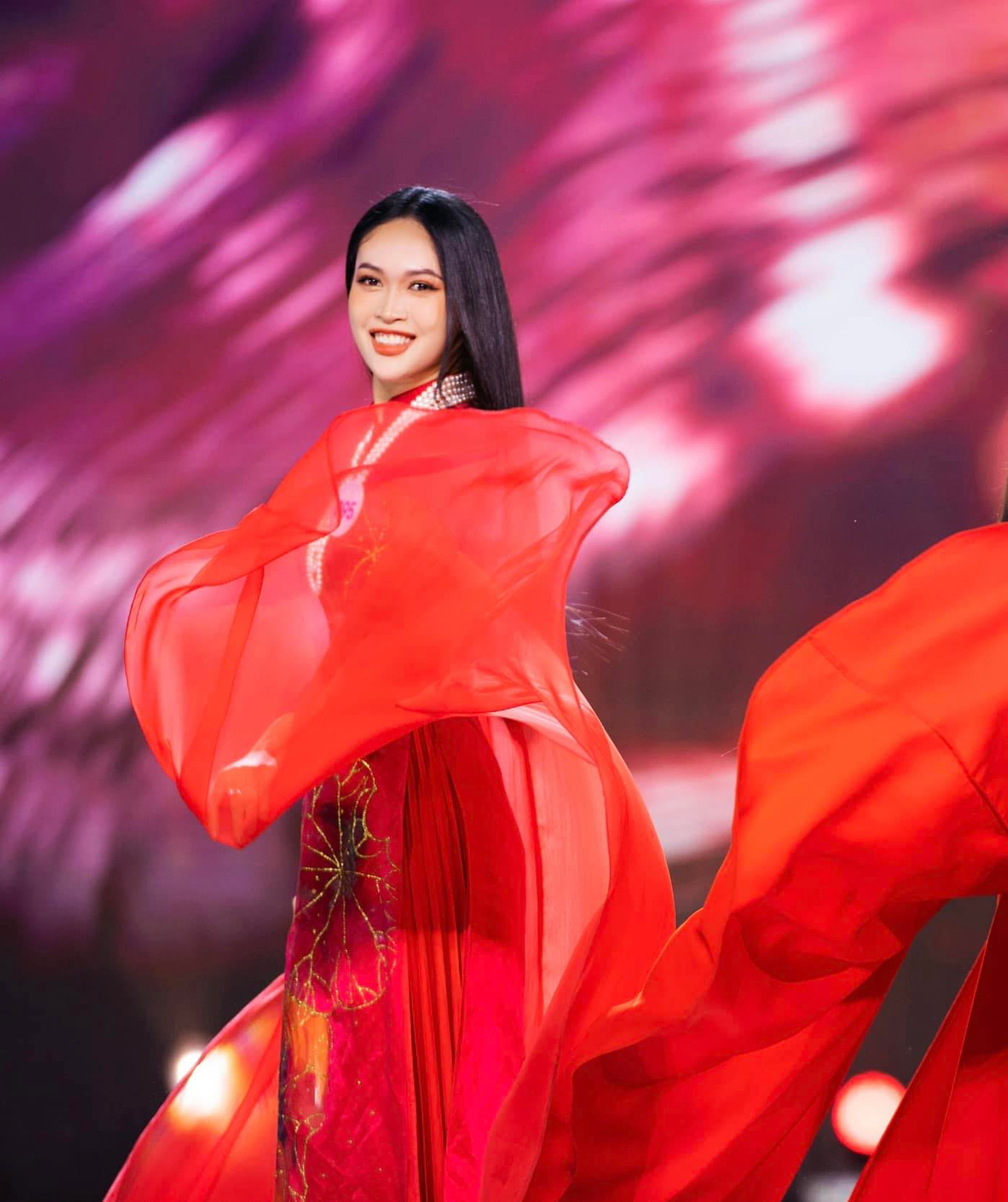 Chiếc áo dài gắn liền với mình từ hồi học sinh, không chỉ khi đến trường mà còn cả những khi đi chụp ảnh mẫu hoặc trình diễn thời trang. Đến với cuộc thi, mình đã thực hiện những bộ ảnh trong trang phục áo dài, với nhiều kiểu khác nhau, từ truyền thống cho đến cổ phục, Nhật Bình, với mục đích giới thiệu chiếc áo dài Huế cho các bạn trong và ngoài nước. Đặc biệt, mình cũng lồng ghép những địa điểm du lịch, văn hoá, đời sống của người Huế trong những bộ ảnh, thước phim dự thi Người đẹp Du lịch.