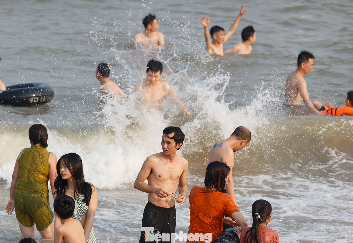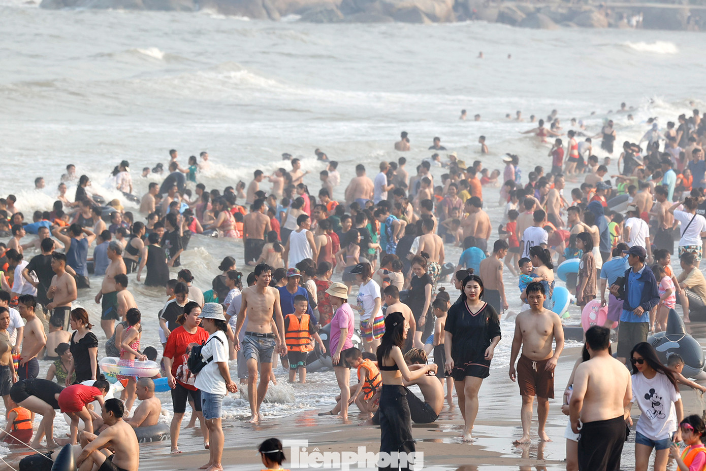 | Giữa cái nắng nóng đầu hè, hàng vạn du khách và người dân địa phương đổ về Sầm Sơn tắm mát khiến bờ biển đông nghịt. |