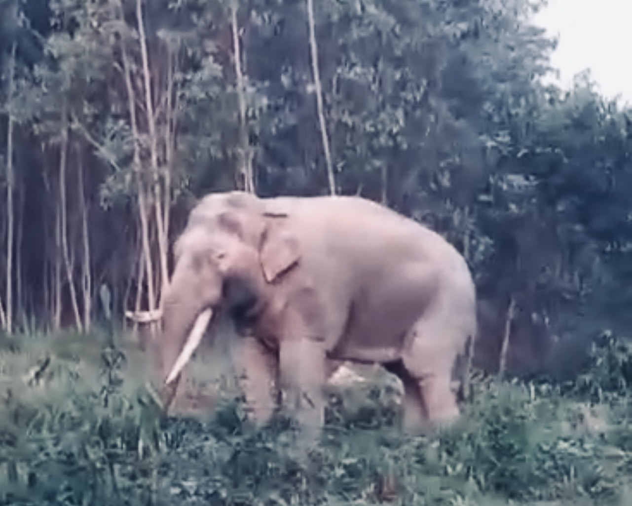 Dạo gần đây, voi ngà lệch ra khu vực rẫy của người dân với tần suất khá nhiều. Tuy nhiên, con voi này chỉ ra tìm kiếm thức ăn rồi trở lại rừng, chứ không phá hoại tài sản, hoa màu của người dân.