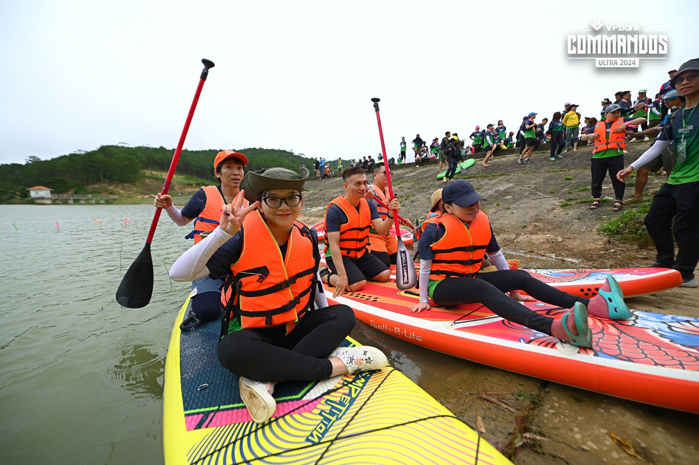 Thử thách cuối cùng trong ngày “luyện quân” của VPBank Commandos Ultra 2024 chính là chèo sup. Mỗi đội chơi sẽ phải vận chuyển các thành viên của mình lên đảo trong thời gian nhanh nhất để tìm cờ được giấu trên đảo.