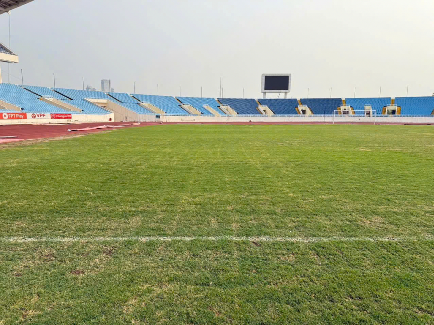 Tuy nhiên, vẫn còn hiện tượng cỏ úa, vàng, màu sắc không đẹp. Đồng thời, còn một số vị trí tại khu vực giữa sân cần trám thêm cỏ để đảm bảo điều kiện thi đấu. Công tác chăm sóc mặt sân được triển khai tích cực. Đại diện Thể Công Viettel cũng khẳng định đội ngũ nhân viên, kỹ thuật viên chăm sóc cỏ của đội bóng đang phối hợp tích cực cùng ban quản lý sân.