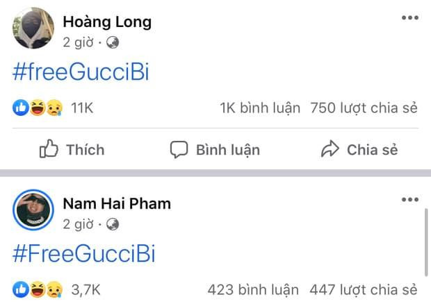 Một động thái khác khiến sự việc càng gây chú ý là việc loạt rapper Hà Nội được cho là có mối quan hệ thân thiết với Bi - con trai nghệ sĩ Xuân Bắc đã cùng nhau đặt hashtag #FreeGucciBi, kêu gọi "giải cứu" cậu bạn. Thế nhưng, đây dường như tiếp tục là hành động gây ảnh hưởng đến tâm lý của các bạn nhỏ khi càng thu hút thêm nhiều dư luận ồn ào về sự việc.