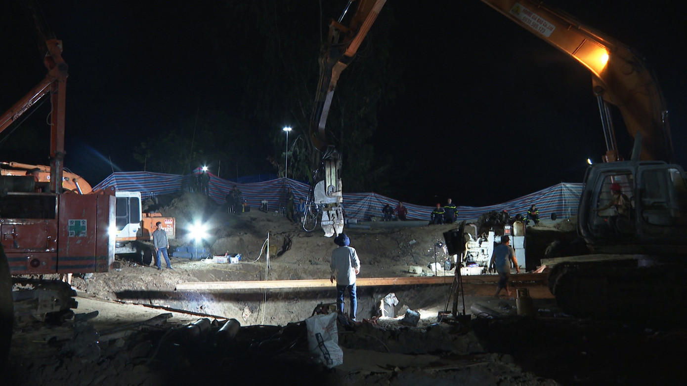 Nhận được tin báo, lực lượng chức năng địa phương đã có mặt, đưa máy móc, thiết bị chuyên dụng vào hiện trường để hỗ trợ gia đình giải cứu cháu bé. Tuy nhiên, do móng cọc bê tông đã được đóng sâu trong lòng đất, nên công tác cứu hộ gặp nhiều khó khăn.
