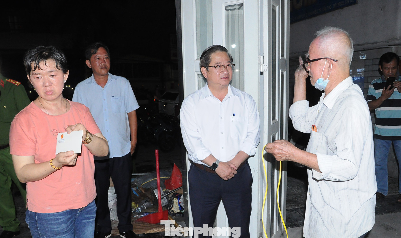 | Ông Trần Việt Trường - Chủ tịch UBND thành phố Cần Thơ thăm hỏi, động viên, trao hỗ trợ gia đình chủ gara ô tô Kim Thu. |